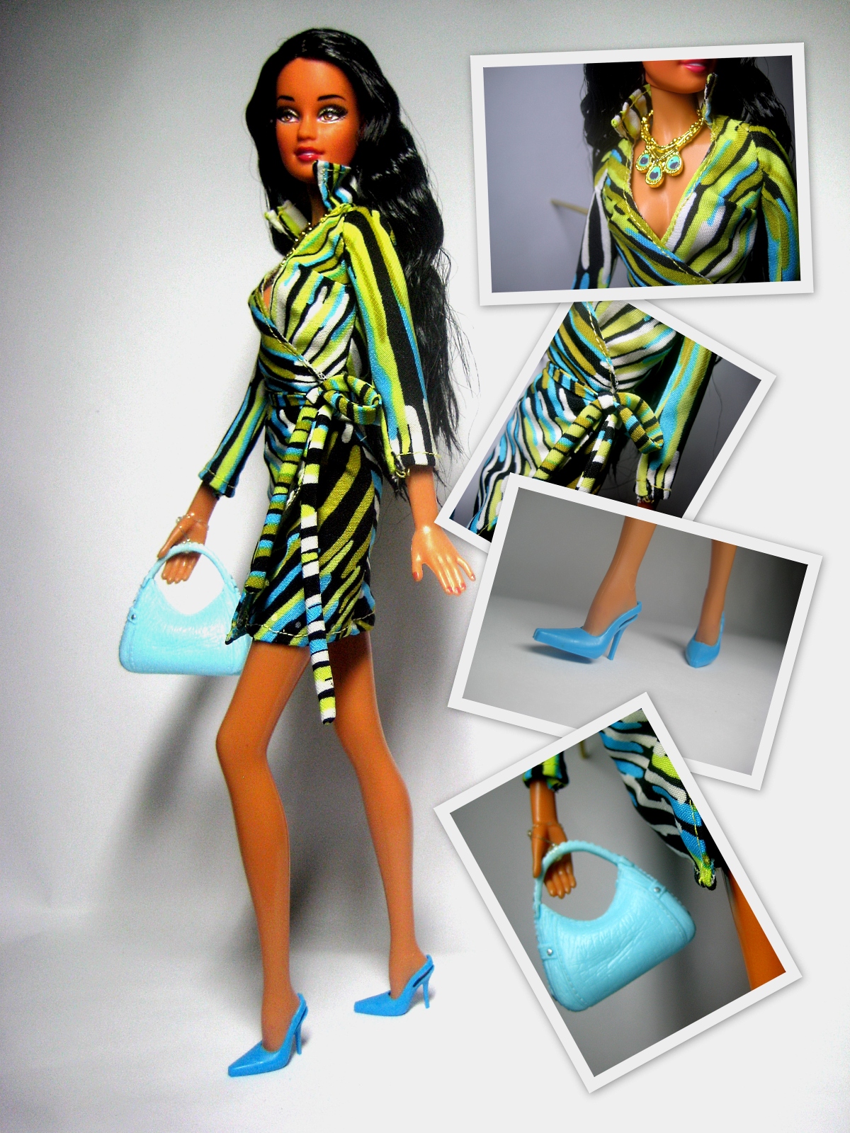 I untied her braids and retained the waves on her hair. I felt she's more sultry that way. I was lucky to have a fashion pack from Liv dolls having an interesting necklace with a peacock motif and I thought it matches her dress. The bag is also from the same Liv fashion pack. The shoes is from a Barbie Basics fashion pack.